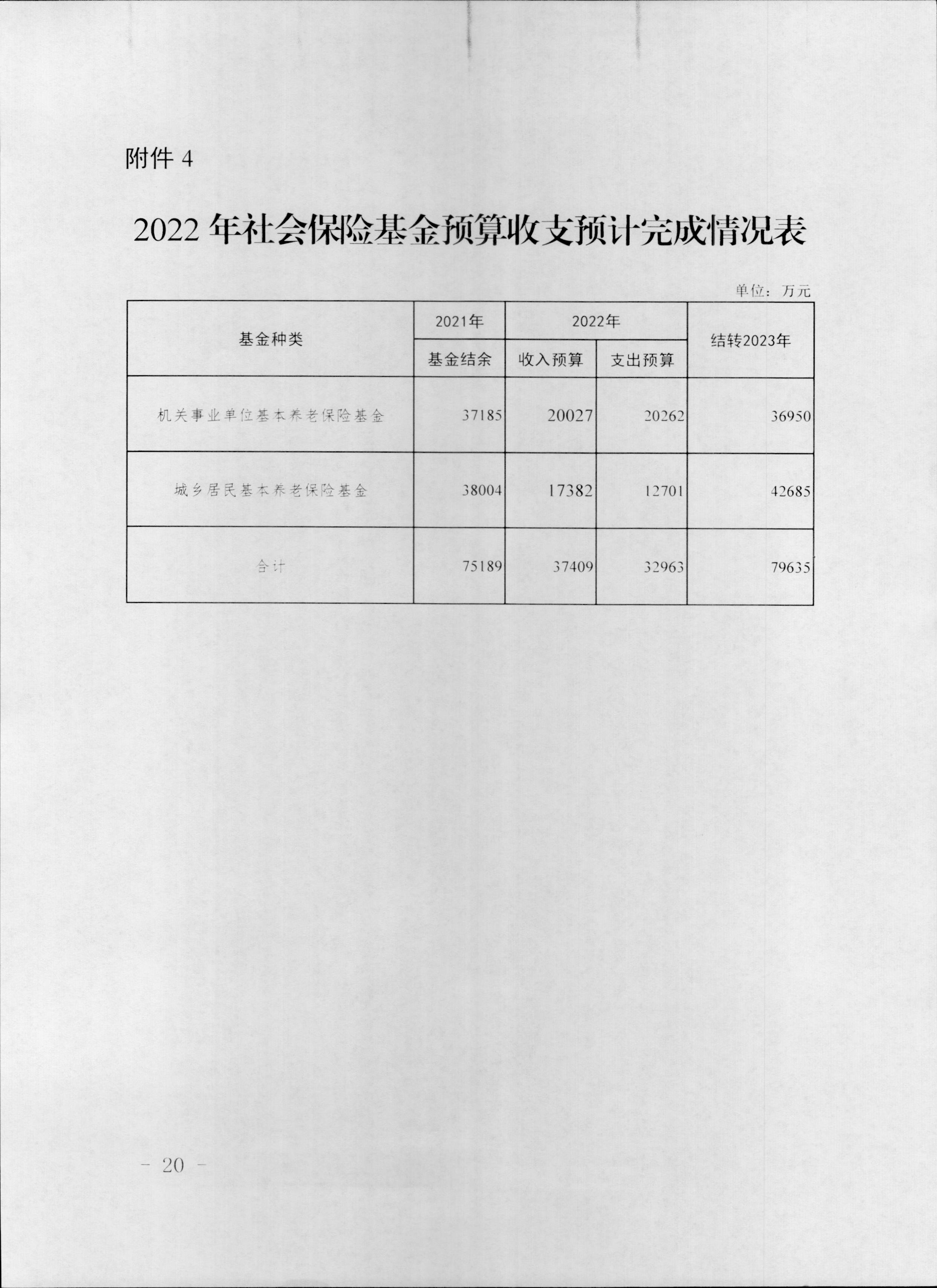 机关事业单位基本养老保险基金收入2亿元,上年结转3.72亿元,总收入5.72亿元;支出2.03亿元,结余3.69亿元。城乡居民社会养老保险基金收入1.74亿元,上年结转3.8亿元,总收入5.54亿元;支出1.27亿元,结余4.27亿元。