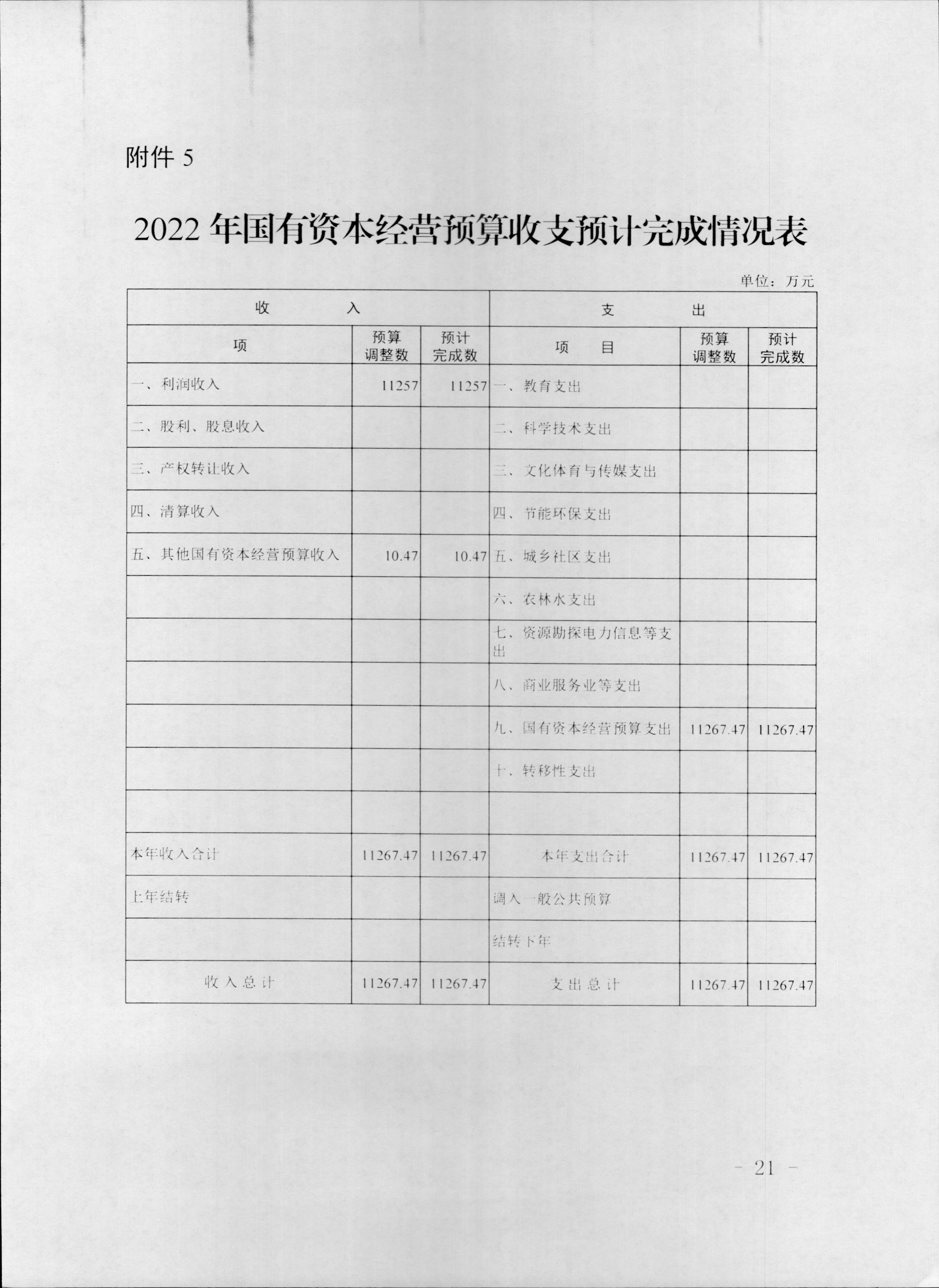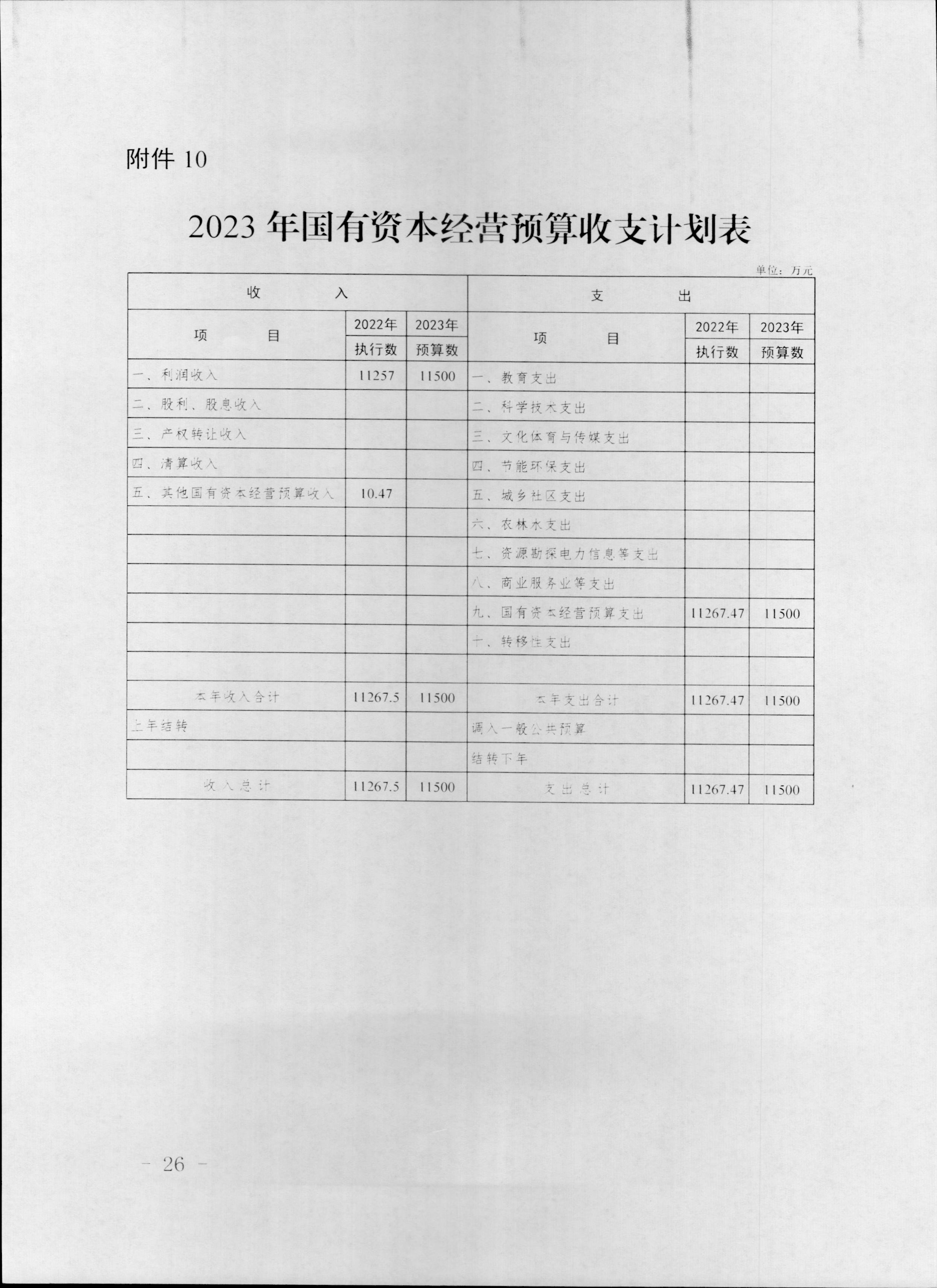 国有资本经营预算收入1.13亿元,增收0.08亿元、增长7.6%。国有资本经营预算支出1.13亿元,收支平衡。