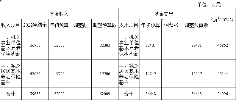 2023年社会保险基金预算收支调整情况表