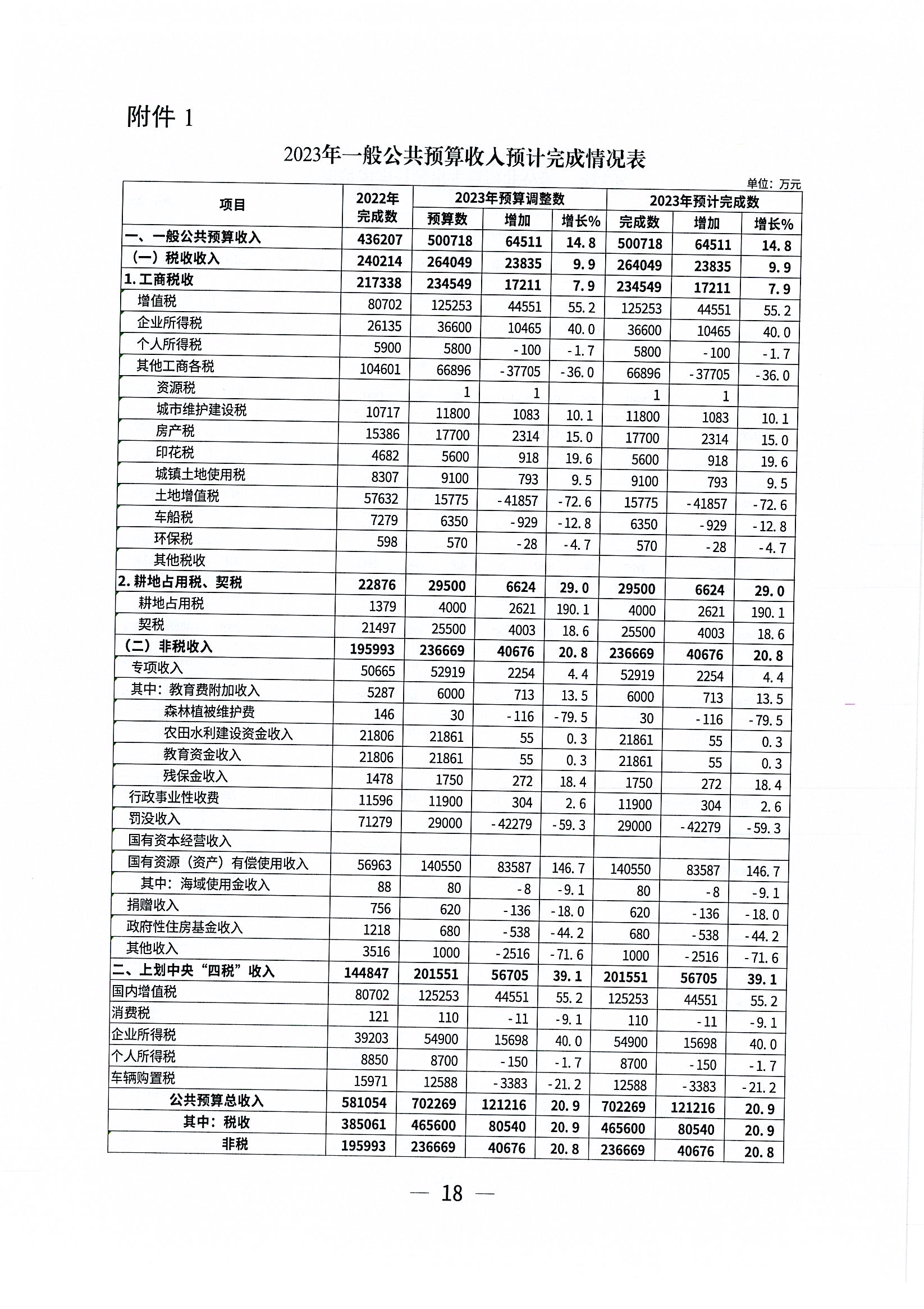 一般公共预算总收入70.23亿元,增收12.12亿元、增长20.9%;一般公共预算收入50.07亿元,增收6.45亿元、增长14.8%。