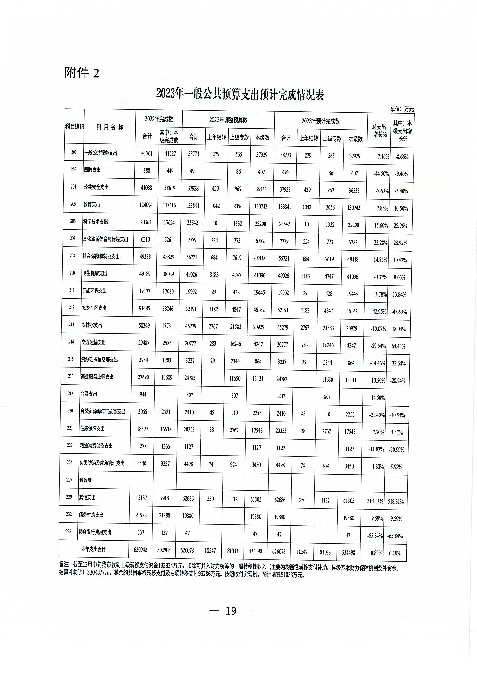 由于财政年度尚未结束,以上预计数在决算编制完成后将会有所变动。待决算正式编制完成后,再呈报市人大常委会审批。