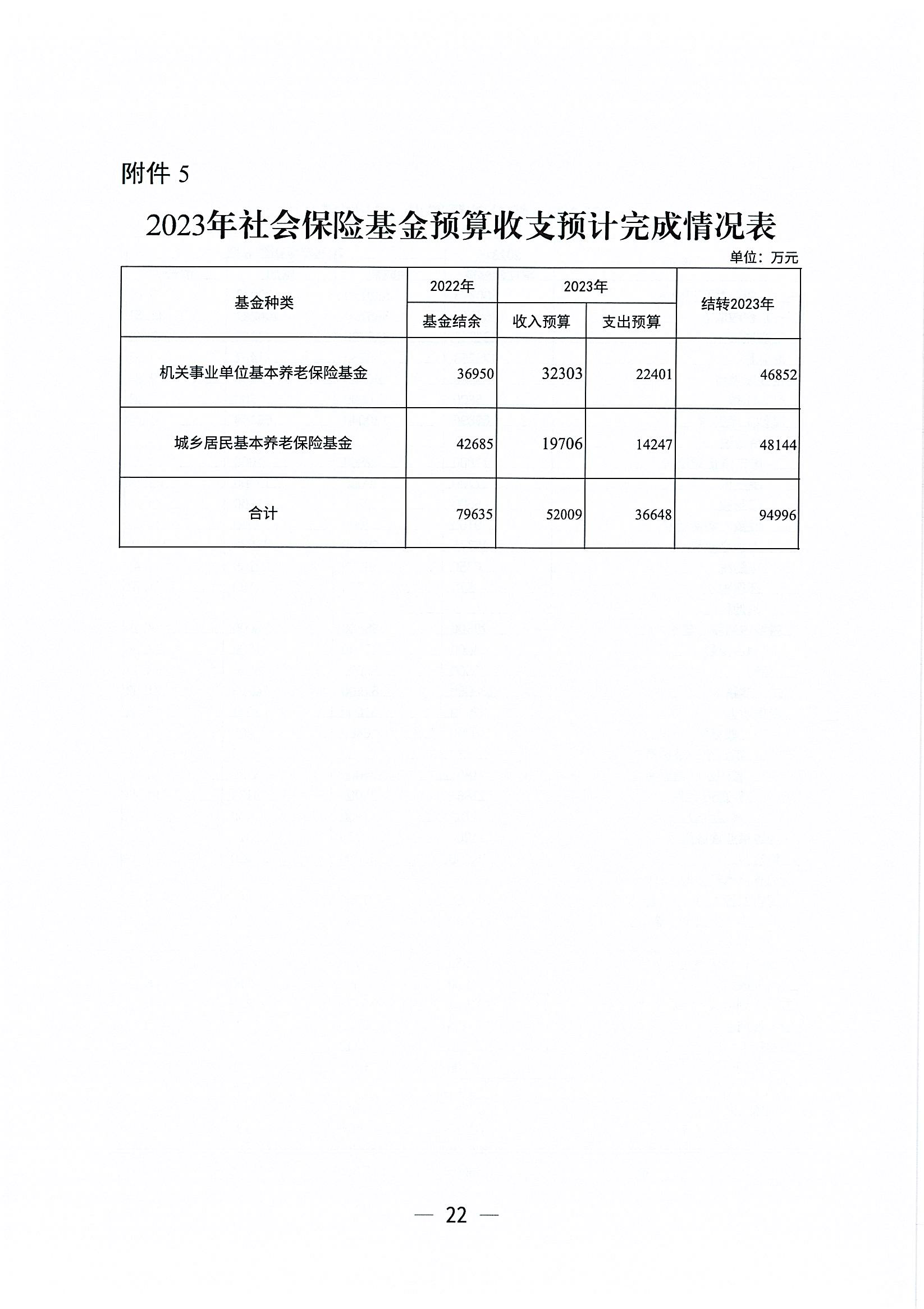 机关事业单位基本养老保险基金收入3.22亿元,上年结转4.69亿元,总收入7.90亿元;支出2.46亿元,结余5.44亿元。城乡居民社会养老保险基金收入2.01亿元,上年结转4.81亿元,总收入6.82亿元;支出1.60亿元,结余5.22亿元。