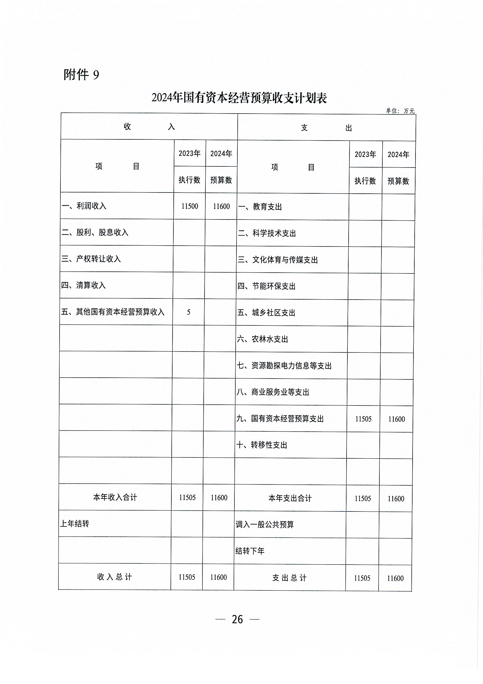 国有资本经营预算收入1.16亿元,国有资本经营预算支出1.16亿元,主要是安排资本金注入和运营补贴等支出1.16亿元,实现收支平衡。