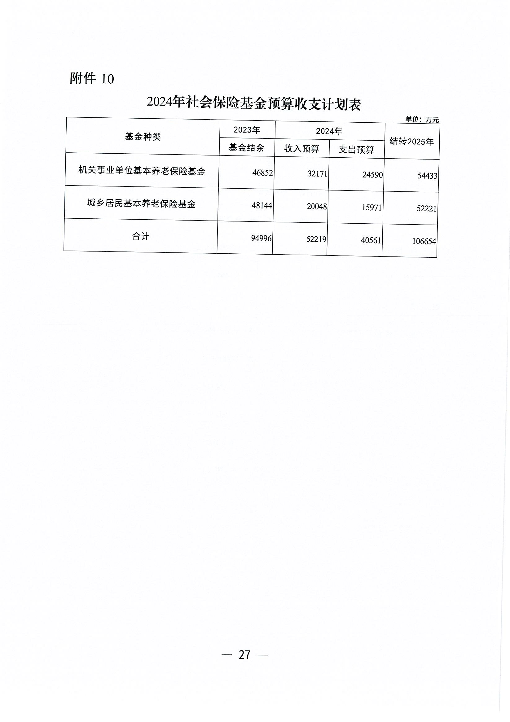 机关事业单位基本养老保险基金收入3.23亿元,上年结转3.7亿元,总收入6.93亿元;支出2.24亿元,结余4.69亿元。城乡居民社会养老保险基金收入1.97亿元,上年结转4.27亿元,总收入6.24亿元;支出1.43亿元,结余4.81亿元。
