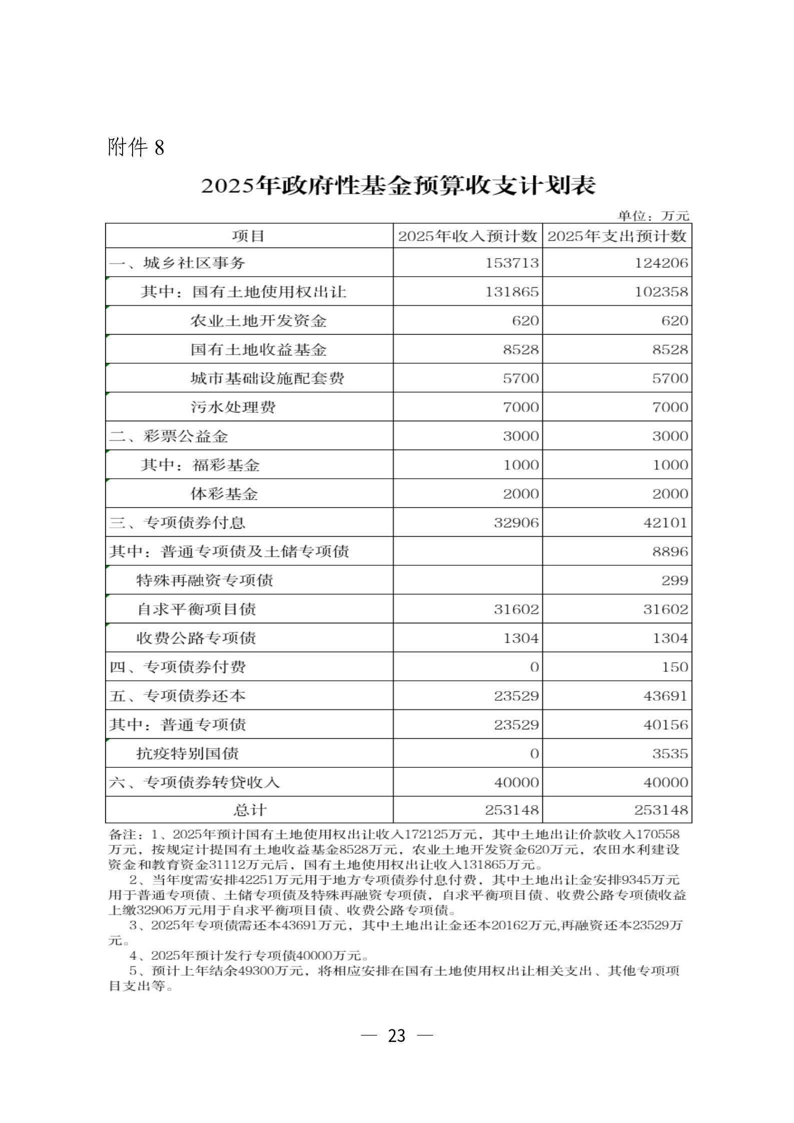 (3)平衡情况。政府性基金收入25.31亿元,政府性基金支出25.31亿元,收支平衡。
