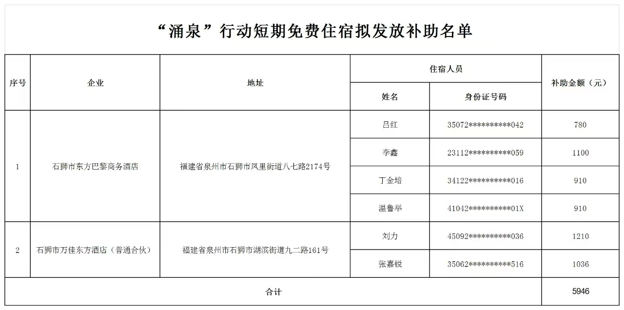 附件:“涌泉”行动短期免费住宿拟发放补助名单