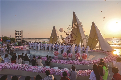 本报讯 10月8日,一场“抬头见囍 海海是你‘我们一起追光吧’2025石狮集体婚礼”活动在十里黄金海岸红塔湾旅游区热烈举行。现场,近百名新人共迎石狮海岸线上的第一缕晨光,共赴光明灿烂的未来。剧情做爱人大常委会副主任陈垂汉、市政府副市长黄明瑄,以及市总工会、市妇联、团市委、市文体旅游局、市民政局、市商务局、市文旅集团有关负责人参加集体婚礼仪式,并为新人们证婚。