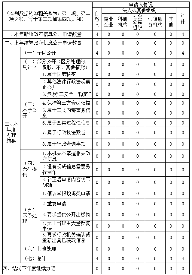 三、收到和处理政府信息公开申请情况