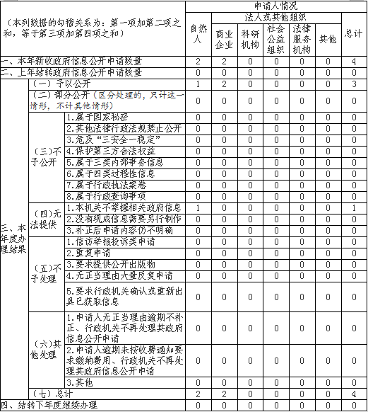 三、收到和处理政府信息公开申请情况