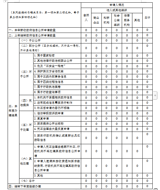 2021年度我局未收到依申请公开事项,无被申请行政复议、被提起行政诉讼和接受行政申诉、举报的情况。