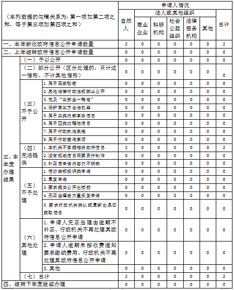(二)做好依申请公开政府信息办理工作。2021年共收到政府信息公开申请2件(历年累计数量2件),其中:当面申请0件,以网上提交表单形式申请0件,其他形式申请2件。该2件政府信息公开申请的申请人类别为自然人,反馈意见皆属于“不属于本机关掌握相关政府信息”,目前2件申请公开已办结。