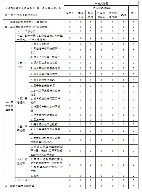 2021年受理申请的数量0条,未接收到书面或其他形式要求公开政府信息的申请,本年度依申请公开0项。
